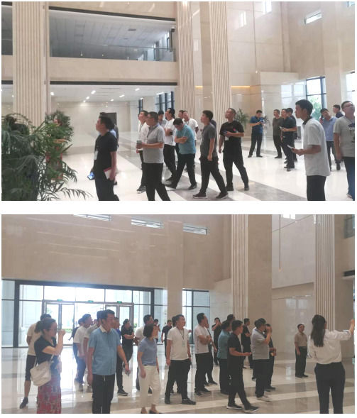 2019年7月10日下午,我公司副總經(jīng)理任喜軍同志率領(lǐng)我們監(jiān)理的長城今典小區(qū)、長城理想城、長城德鄰城項(xiàng)目監(jiān)理部總監(jiān)、專監(jiān)和項(xiàng)目經(jīng)理與項(xiàng)目技術(shù)負(fù)責(zé)人共30余人,到寶業(yè)建設(shè)集團(tuán)2018年度魯班獎(jiǎng)項(xiàng)目——開封海匯中心現(xiàn)場觀摩學(xué)習(xí)。