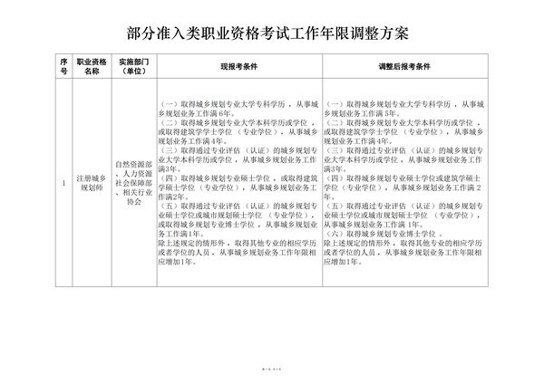 附件:部分準(zhǔn)入類職業(yè)資格考試工作年限調(diào)整方案