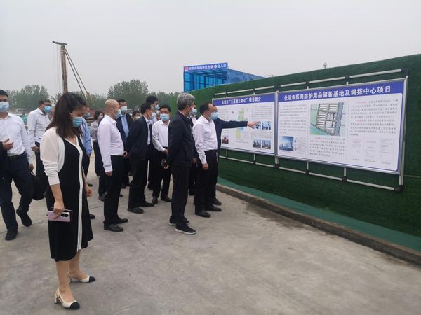 4月26日下午,新鄉(xiāng)市市長魏建平一行在長垣市委書記范文卿、市長鄧國永等領(lǐng)導(dǎo)陪同下,蒞臨河南新源公司監(jiān)理的長垣市防護用品儲備基地及調(diào)撥中心項目檢查指導(dǎo)工作。